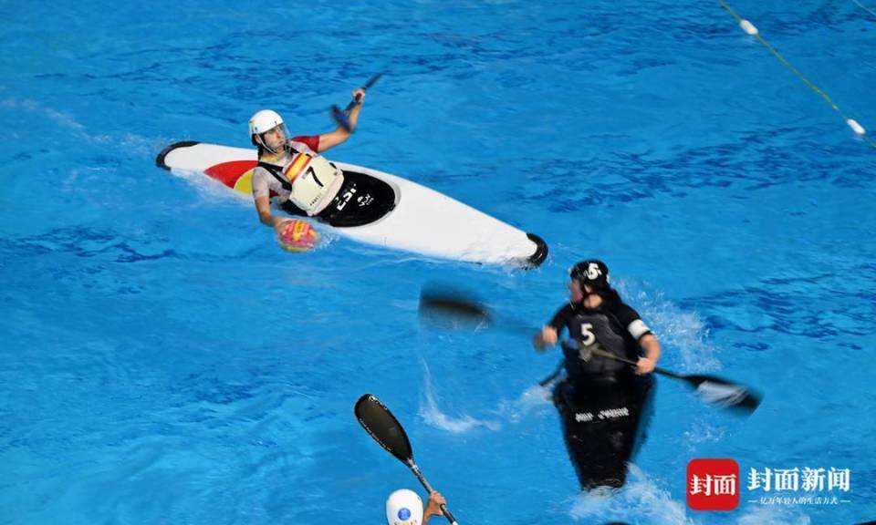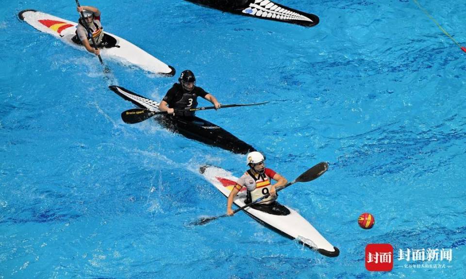 在小小的水池里面划呀划呀划~8月15日,简阳文体中心游泳馆,成都世运会皮艇球比赛争夺进入白热化。本次比赛将于16日收官,产生男、女子组两枚金牌。
