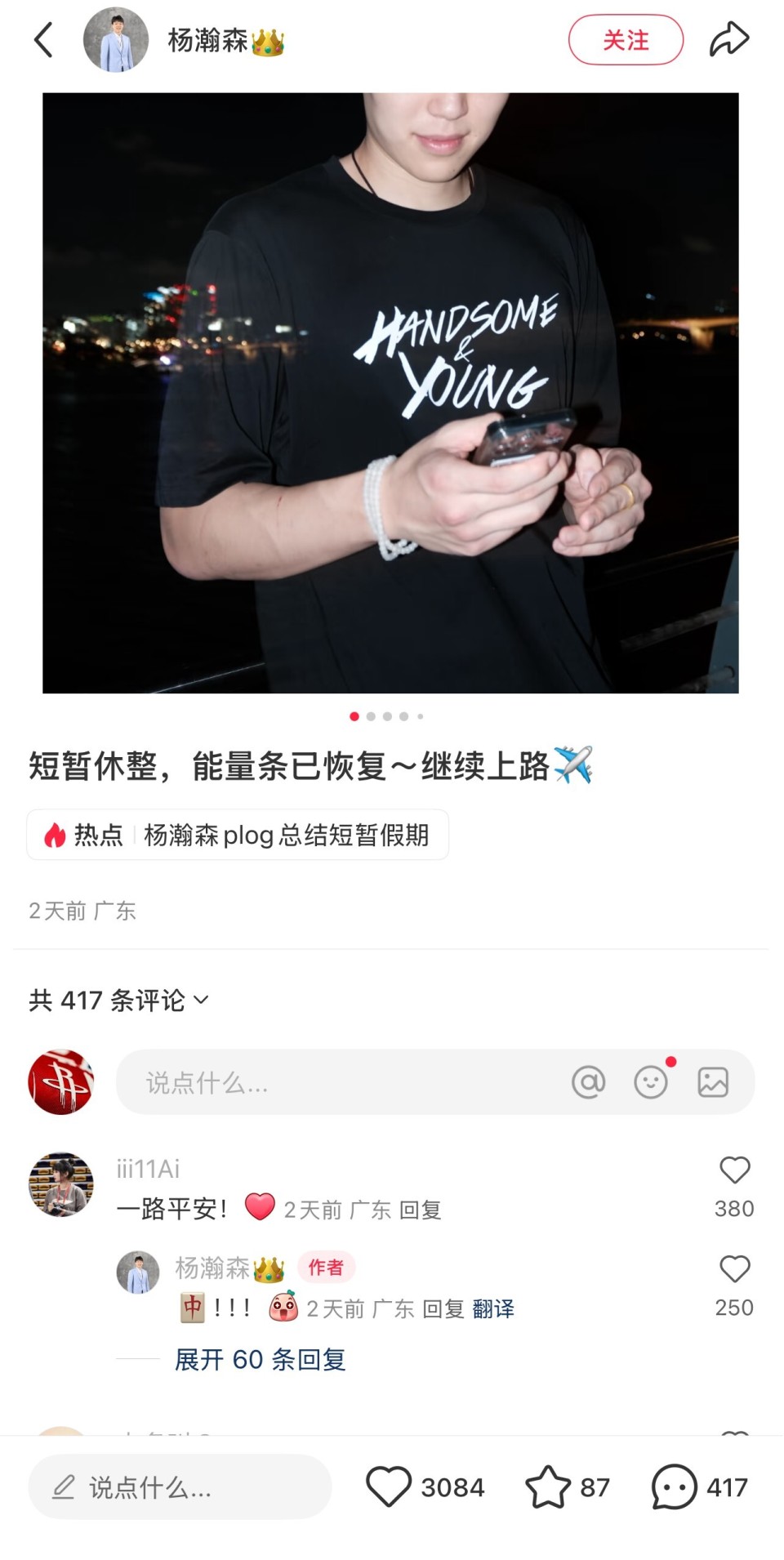 杨瀚森配文写道:“短暂休整,能量条已恢复~继续上路✈️”。据报道,杨瀚森将在香港出发,返回美国备战NBA新赛季。